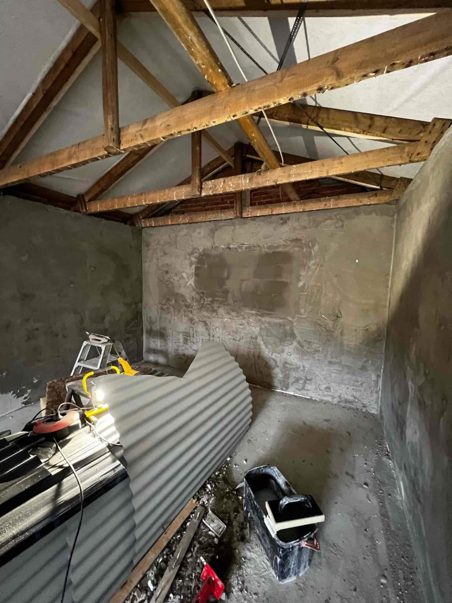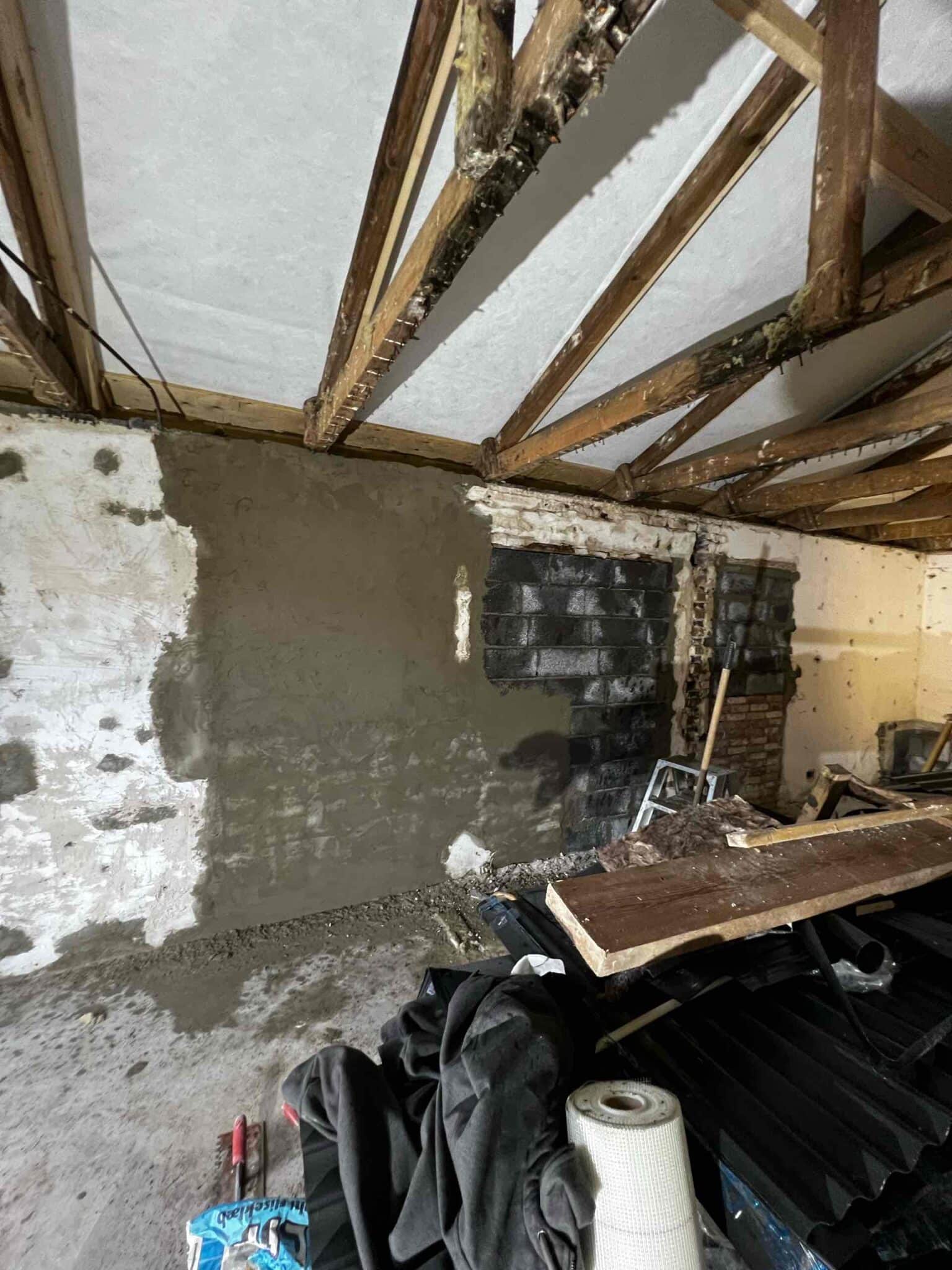 Rep af indvendig vægge, Derefter pudset i hvid slut puds